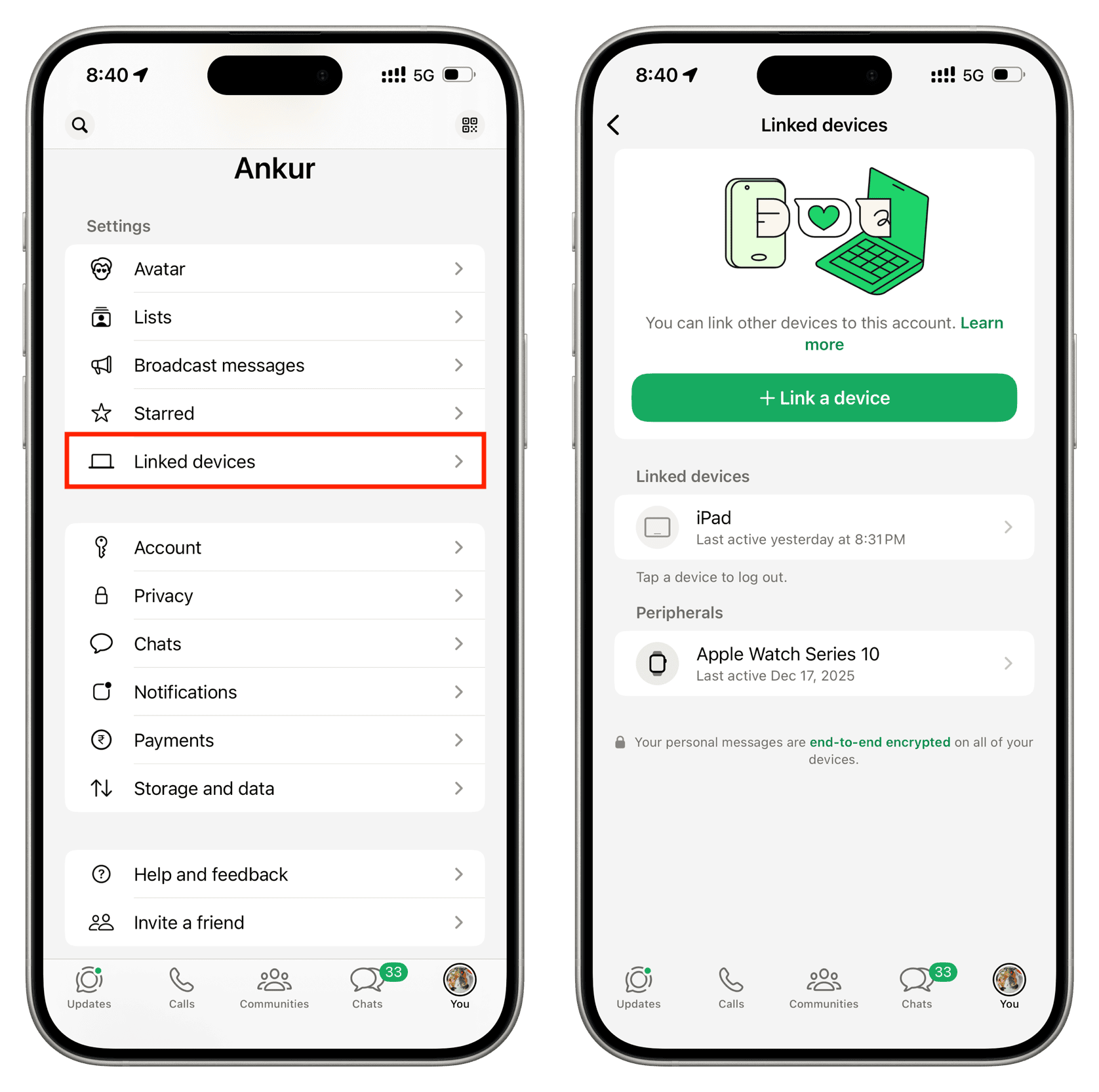 Ve a Ajustes > Dispositivos vinculados en WhatsApp y revisa la lista de teléfonos, tabletas, computadoras y navegadores web que han iniciado sesión en esta cuenta de WhatsApp. Si hay un dispositivo vinculado que ya no usas, tócalo y luego haz clic en Cerrar sesión.
