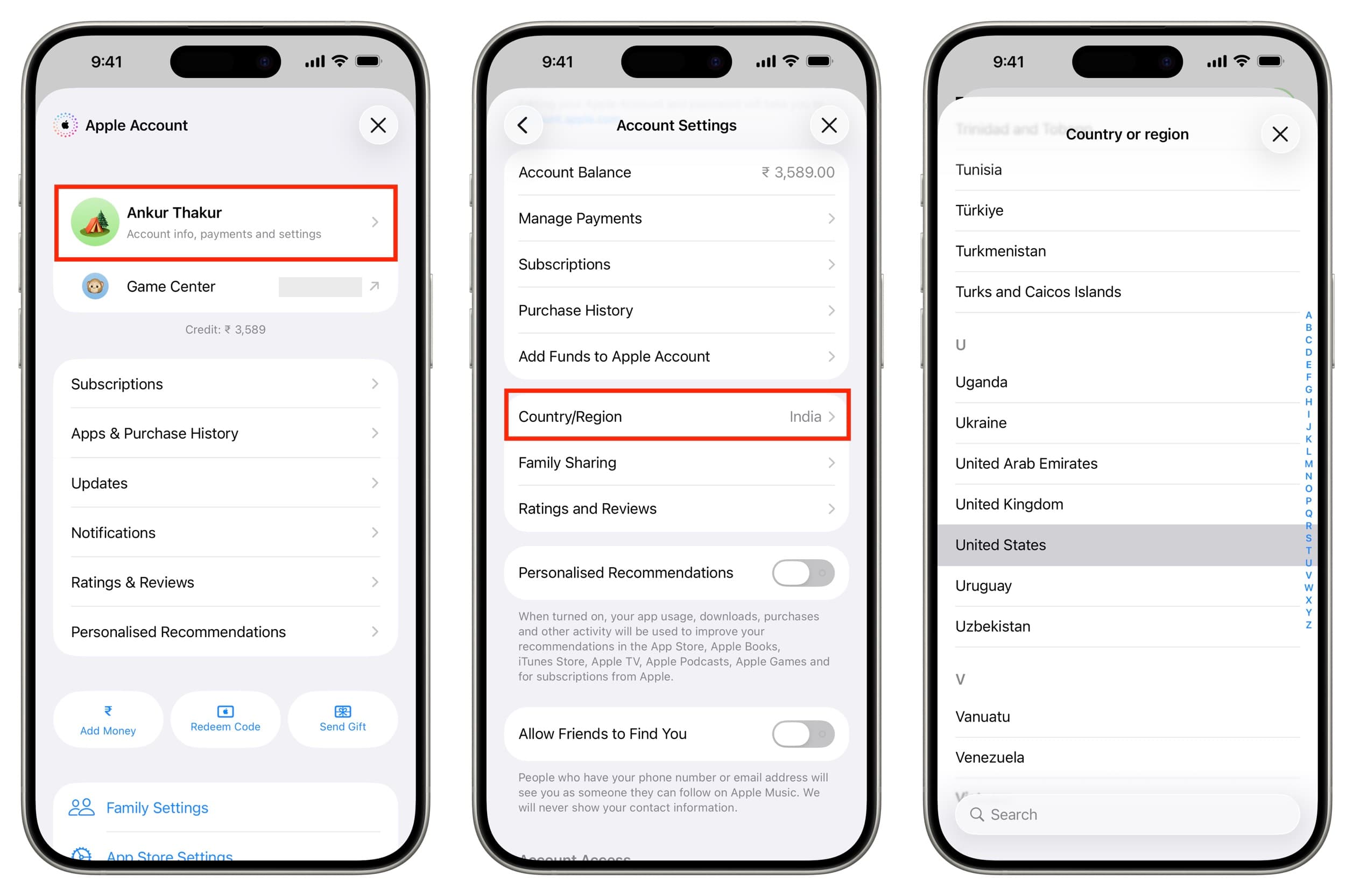 - Tap on Country/Region.