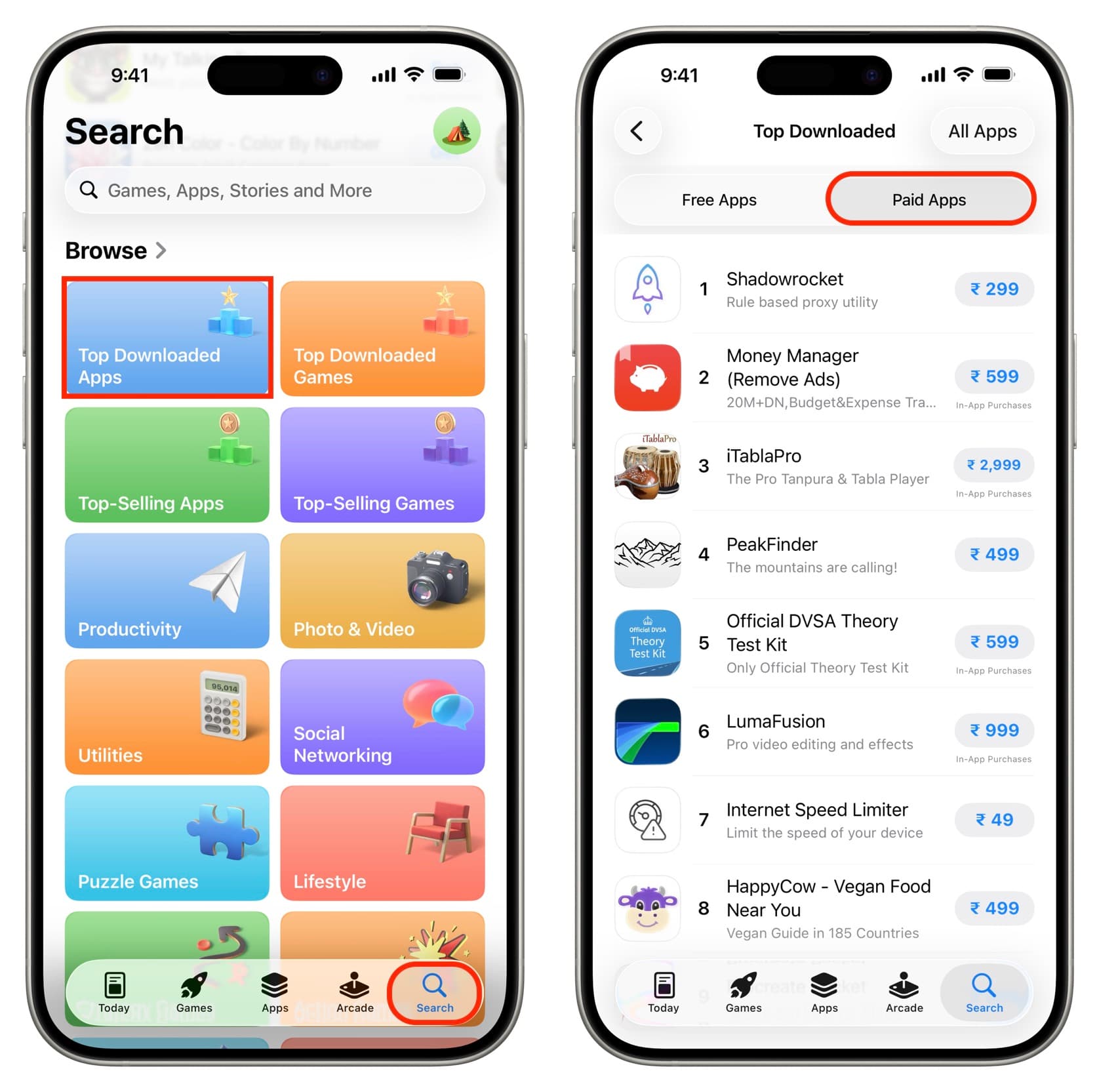 - Open the App Store and tap on Search.