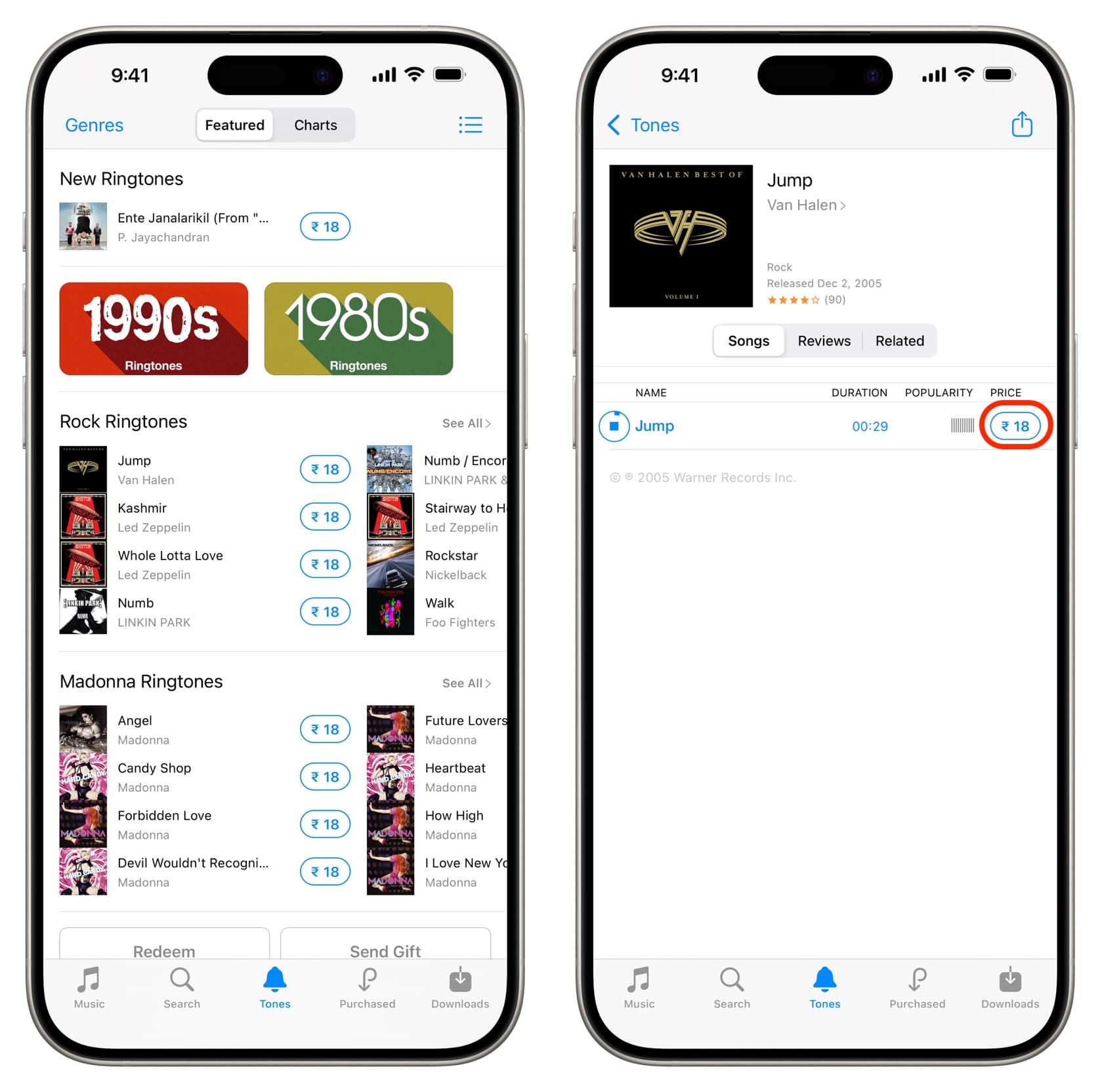 Purchase songs or ringtones