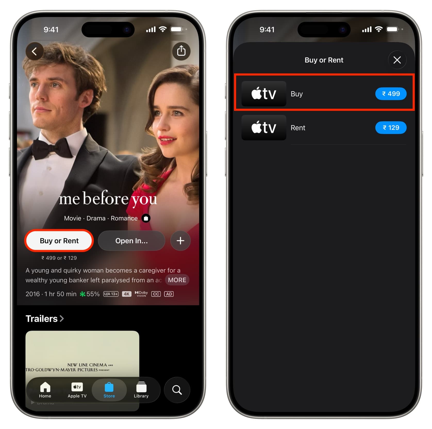 - Find a title and then tap on the Buy or Rent button.