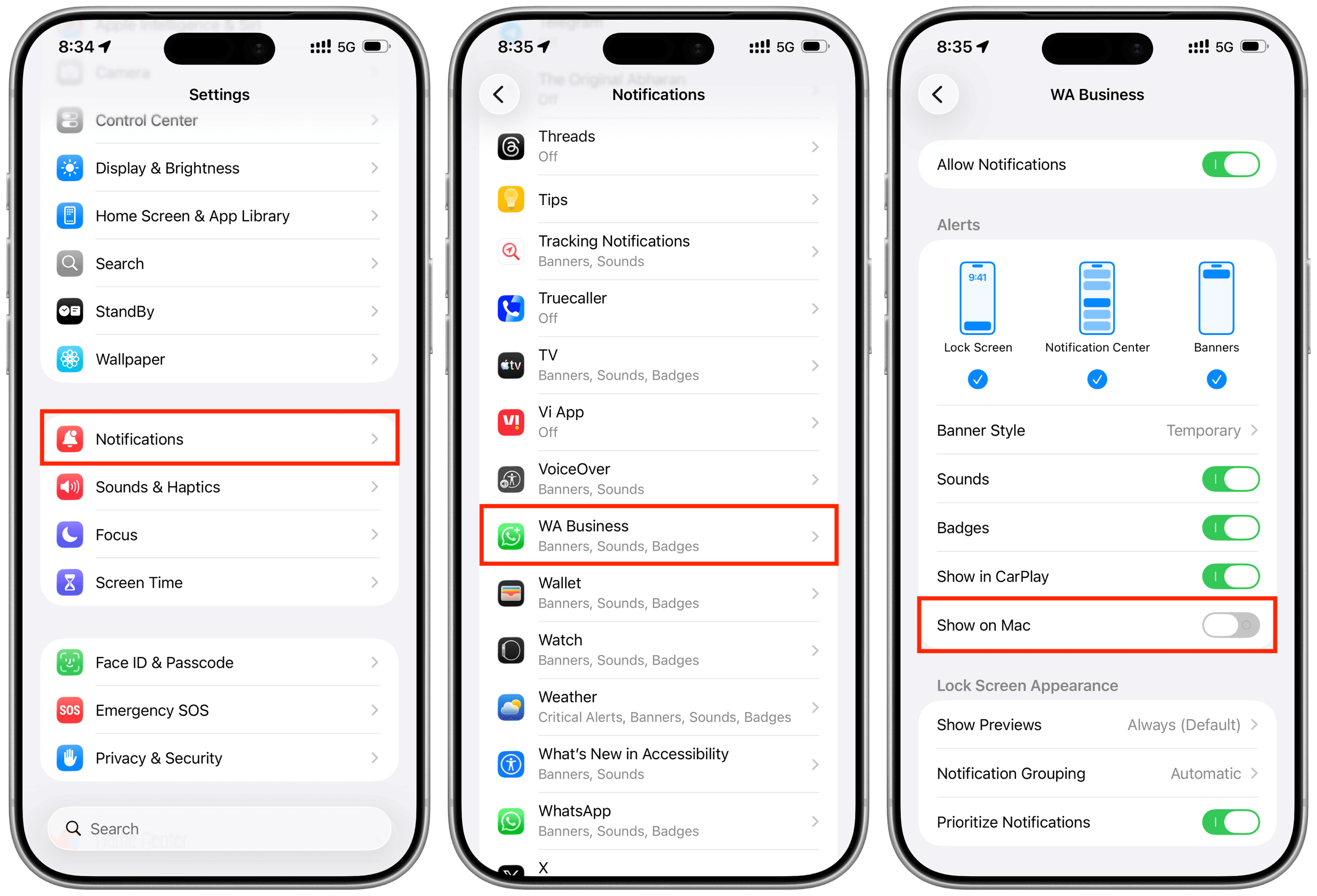 La méthode ci-dessus est utile car elle vous permet de parcourir toute la liste des applications et de les activer ou de les désactiver. De plus, vous pouvez sélectionner une application en allant dans Réglages sur votre iPhone et en touchant Notifications, puis en désactivant l'option “Afficher sur Mac” pour empêcher ses alertes d'apparaître sur votre ordinateur Apple.