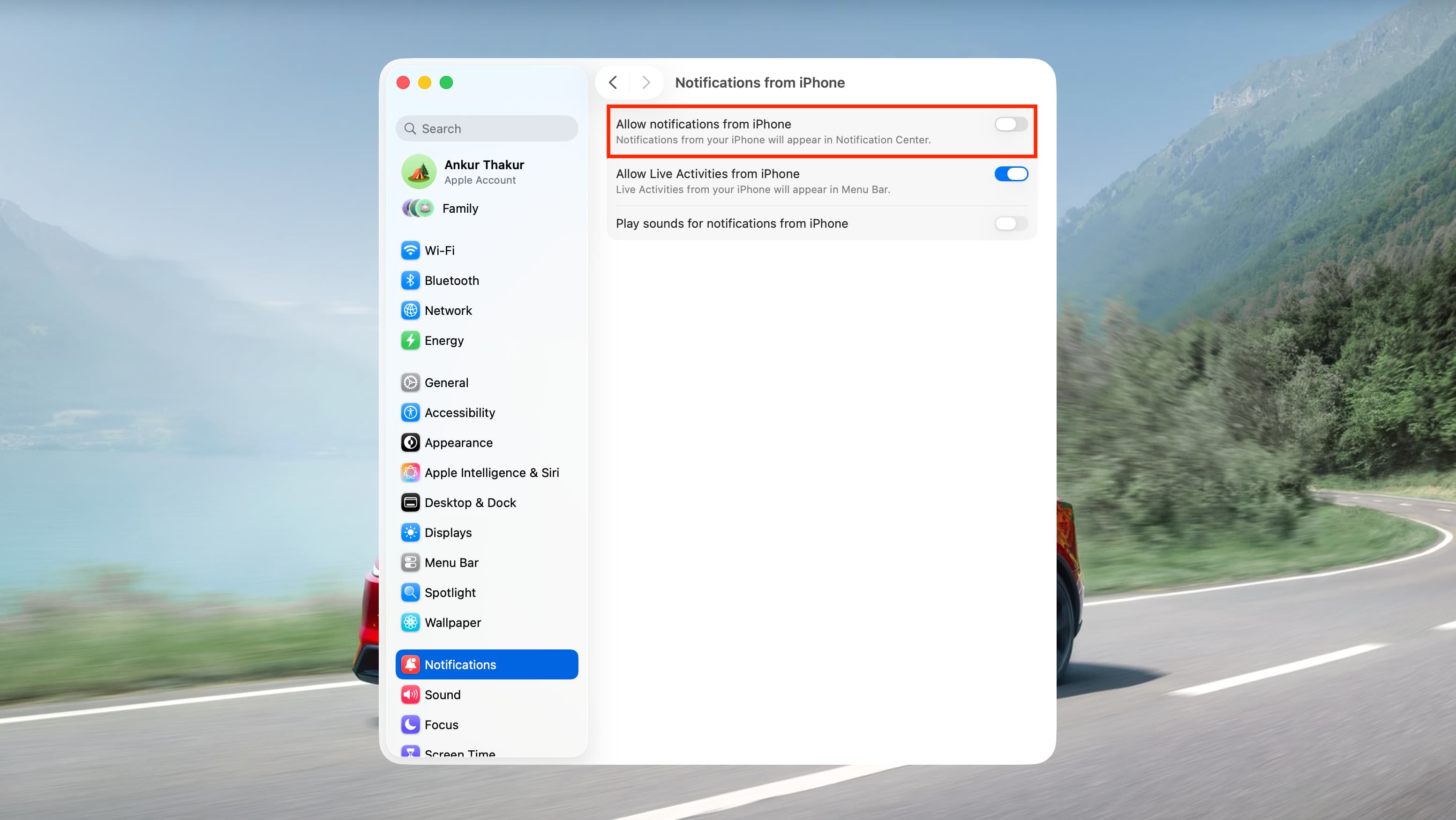 - Désactivez l'option “Accepter les notifications de l'iPhone”. Vous pouvez également choisir d'empêcher l'affichage des événements en direct de l'iPhone dans la barre de menu supérieure de votre Mac.