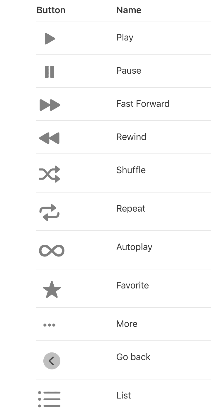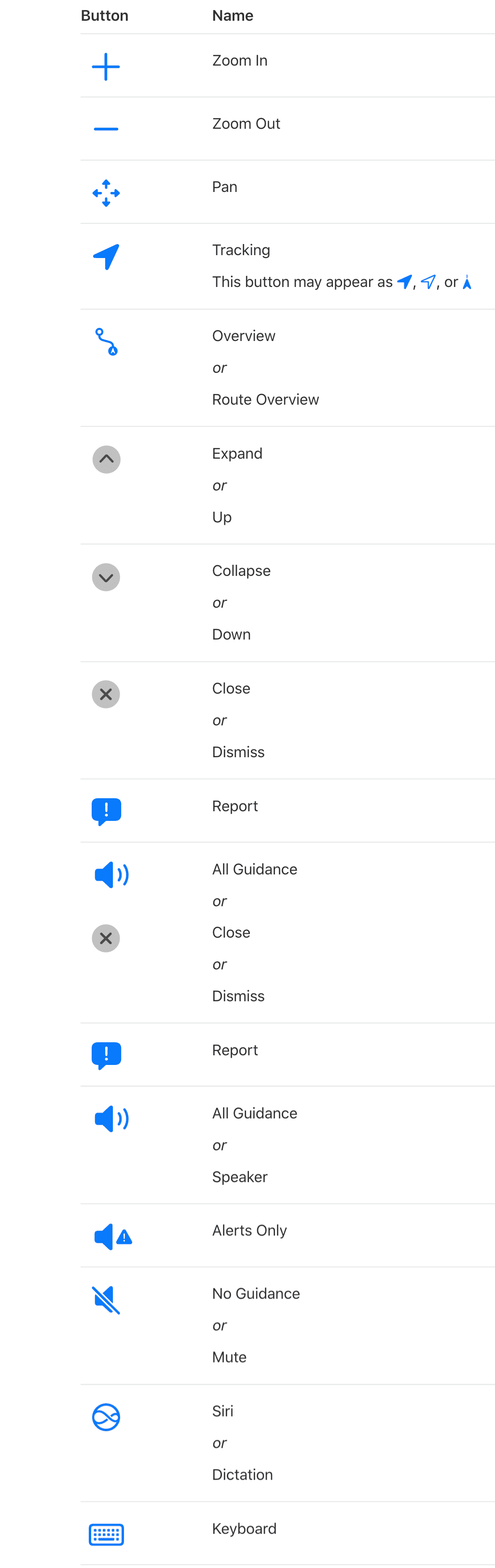 Si un bouton n'a pas de nom ou si vous ne savez pas comment l'appeler, utilisez les noms des boutons dans les images ci-dessous. Ces images sont des captures d'écran prises par Apple.