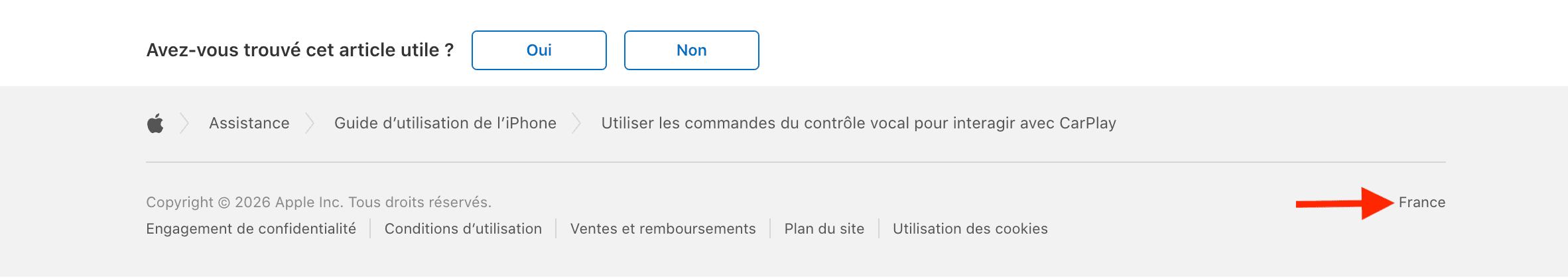 Le contrôle vocal est disponible dans les langues suivantes. Nous avons seulement mentionné les commandes vocales en anglais ci-dessus. Pour connaître les commandes complètes dans d'autres langues prises en charge, visitez la page d'assistance d'Apple à ce sujet, cliquez sur le nom de votre pays actuel et sélectionnez votre pays.