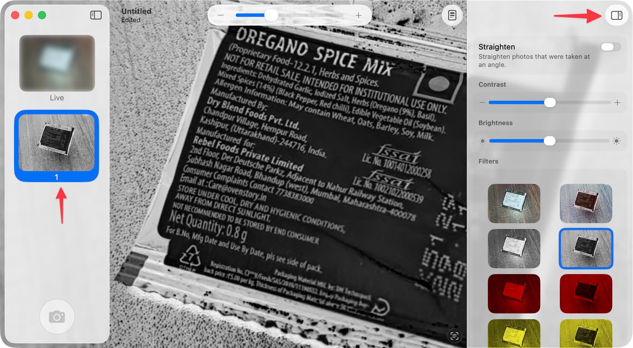 - Utilisez l'icône de la barre latérale pour corriger la vue, modifier le contraste et la luminosité, ou appliquer des filtres. Cela peut vous aider à voir le texte et d'autres choses plus clairement. Vous pouvez enregistrer ces préférences comme vos paramètres par défaut, afin de ne pas avoir à les régler à chaque fois.