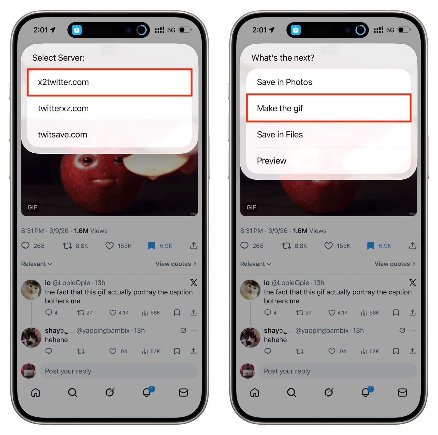 However, when it comes to GIFs, you cannot save them like photos, and you will not see the download button that appears in video posts. This leads you to indirect methods, none of which are straightforward. Still, if you need to save GIFs from X to your iPhone Photos app, here are four ways to do it.